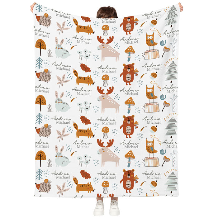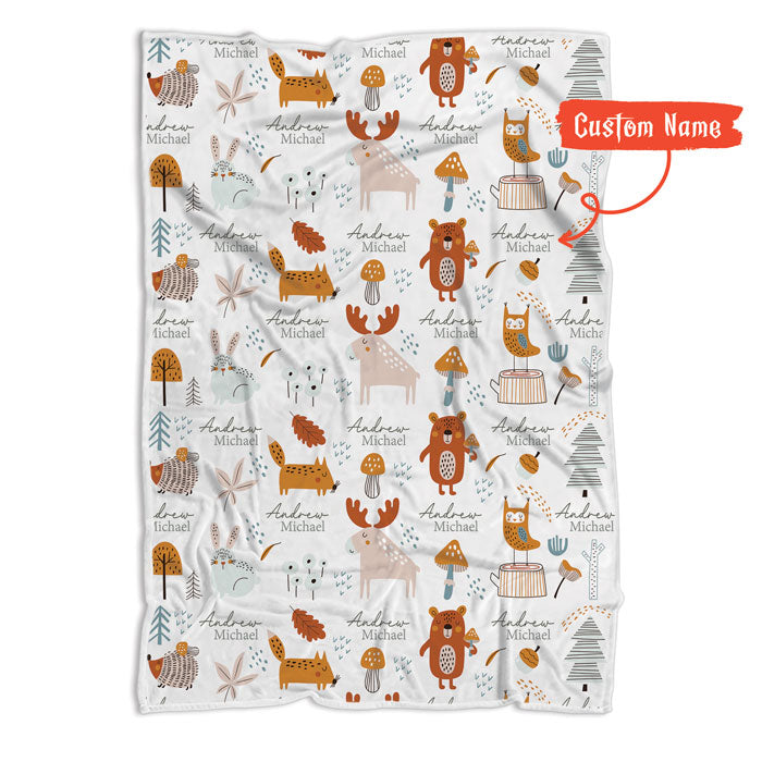 Adorable Woodland Animal Design: Featuring moose, foxes, bears, mushrooms, and forest trees, this woodland baby blanket fleece is filled with charm. The neutral tones fit any nursery, making it great for personalized baby blankets for boys, custom baby blankets for girls, woodland animals baby gifts, and personalized baby blankets with names.